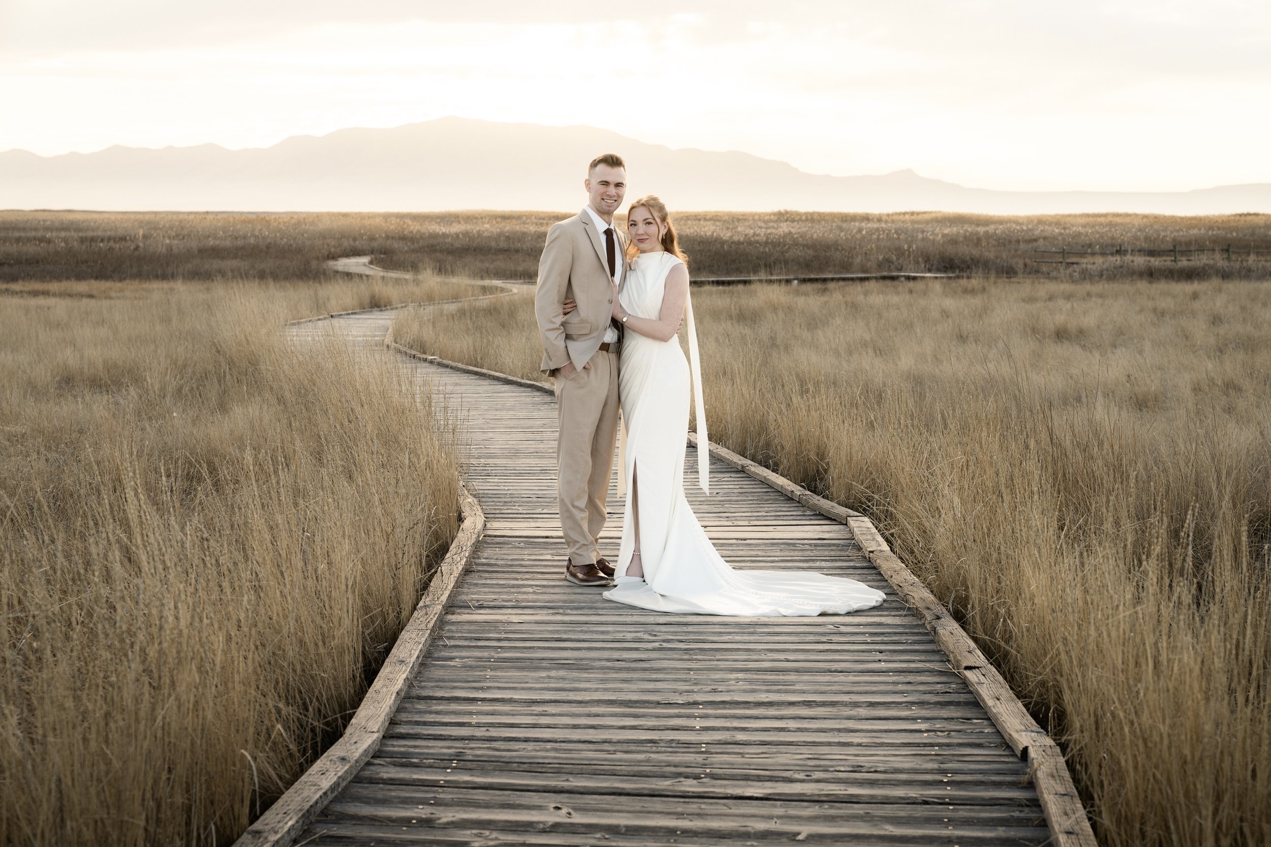 This spot revolves around board walks winding through tall grasses by the Great Salt Lake. In spring and early summer, the grasses are a bright green. They are beautiful but can lead the eye away from your subject in a photo.