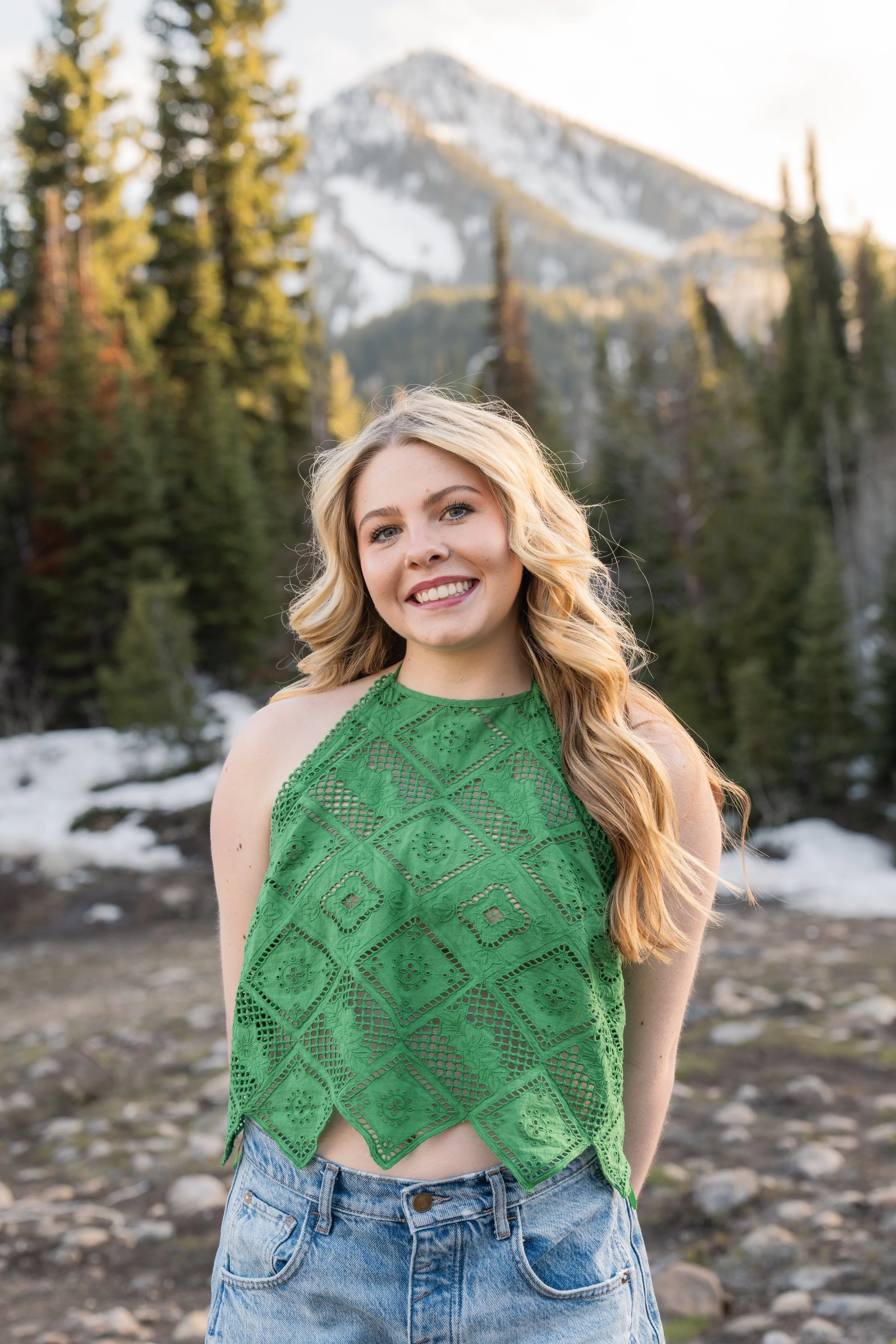 This location feels peaceful and natural, making it perfect for seniors who want something a little different from the typical mountain photo session.